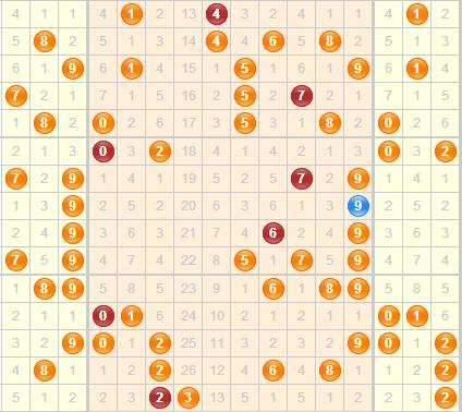 百位:从奇偶走势图上来看,百位上近期的奇偶走势是“奇—偶—奇—偶—奇—奇—偶—偶”,奇偶连续开出的期数在两期左右,偶数已经连续开出两期了,故本期百位上更看好奇数的开出。