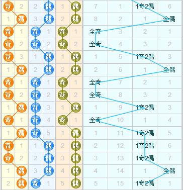 个位:从奇偶走势图上来看,个位上近期的奇偶走势是“奇—偶—奇—偶—偶—偶—偶—偶”,偶数近来较热,在个位上已经连续开出5期,从总的走势图上看,近期任何偏态持续开出的期数都没有超出五期,故本期并不看好偶数的开出。