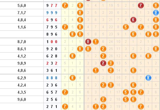 上期开出了271,观察综合走势图的情况,近期的开奖结果中重复号的频繁开出是个该注意的现象,上期开出的重复号是2号球,所以本期2号球需要继续关注;0号球上期未开出,看综合走势图的情况,0号球近期开出的隔期是在7期左右的,那么本期遗漏8期开出正好符合它的规律,所以本期0号球需要防一下;9号球已经遗漏了8期,本期可适当防一下;4号球目前是隔了19期了,是目前最冷的号码,本期需要防一下;综上所述,本期重点关注:012479