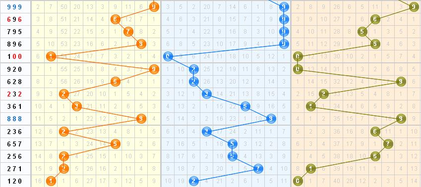 百位:百位上开出了1号球,隔9期之后开出,在它的隔期之内开出。是上期2号球的邻码。看来不止是要注意重码,还要开始注意邻码了。1号为小码奇数,近10期奇偶比开出3:7。近10期百位上大小比4:6,本期关注小数开出,推荐可以杀0和9,关注136。