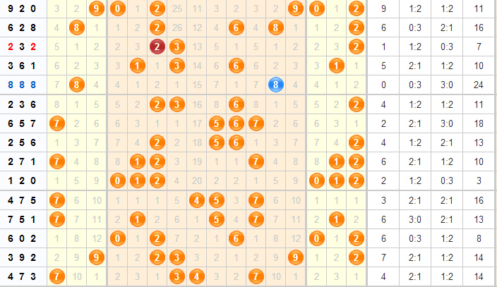 根据近期综合走势图来分析:0号在近期的走势比较稳定,前面开出都是隔了2期开出一次,分析走势,本期看好它的本期开出。3号在前面连续开出两期,分析近期走势,连续开出三期的开奖号码还是比较多的,本期看好爱它的继续开出。4号和5号在斜连号上,分析近期的斜连号走势,本期看好斜连号的开出。7号在前面重复开出,分析7号近期走势,本期看好它的开出。8号在当前10期没开出,分析8号近期的走势,本期看好它的开出。本期综合推荐号码:034578