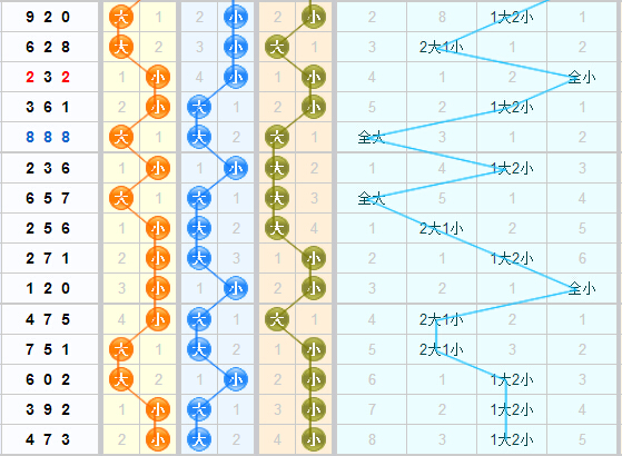 百位:百位上连续开出两期大号和两期小号,分析往期走势,本期推荐百位大小都关注。