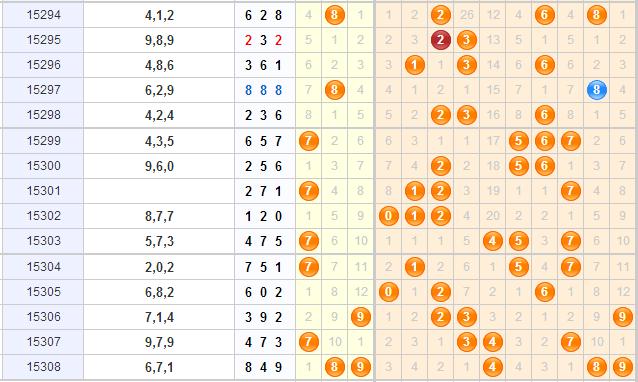 十位上开出了偶数,近期的偶数非常的有规律,偶-奇奇-偶-奇奇-偶,这样的话接下来是转为开出奇数了,所以大家重点应该是关注奇数的开出。