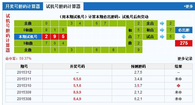 3d之家3d试机号胆码计算器: