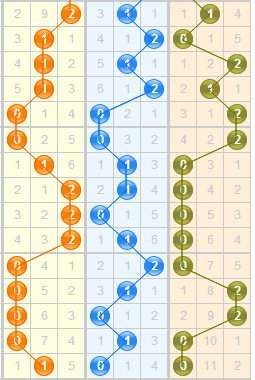 百位:上期开出1路号码4,近十期012路比值5:2:3,1路相隔7期开出,目前0路较为强势,根据遗漏走势来看,本期首选2路码,防0路出号。