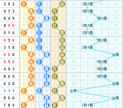 上期开出785,舍利子分析预测命中胆码5和7,直选十位命中胆码8,和尾命中0,总体上还是可以的,本期舍利子根据走势图分析奇偶形态得出看好的数字,综合分析重点看好偶数的开出,防奇数号。具体分析如下:
