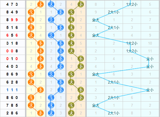 上期开奖情况回顾:开奖号码:286,和值:16,跨度:6,012路:220,质合形态:质合合,大小形态:小大大,奇偶形态:偶偶偶。