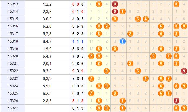 上期开出了819,开出了2个重复号,近期重复号几乎都有开出来,本期的话重复号继续关注8号球;0号球目前是隔了2期,而且是中间号,在第325期的时候就开出了中间号码;2号球是上期开奖号码的邻码,近期邻码是每一期都有开出来;3号球目前是隔了5期了,近30期中3号球的平均遗漏在5左右,本期需要防一下;6号球跟7号球都隔了2期,从10期中有好几期都是开出了隔了2期的号码,所以本期也需要重点关注隔了2期的号码。综合以上分析本期重点关注023678。
