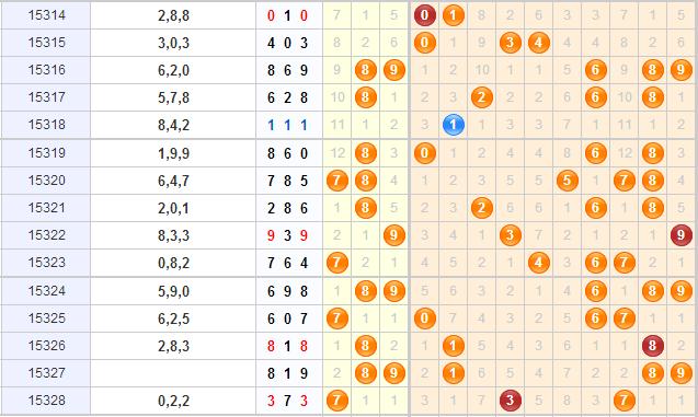 从近期福彩3D综合走势图的奖号分布情况来分析一下3d第2015329期开奖号码情况: