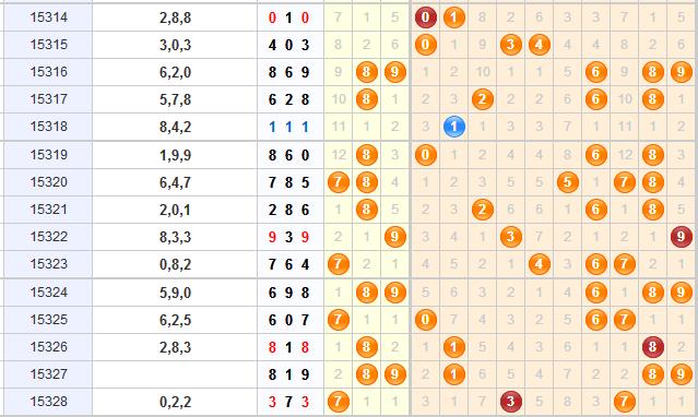 胆码分析:上期开出373,组三形态,本期推荐关注组六形态的开出;0号球目前间隔3期未开出,本期可关注它在间隔3期之后开出;2号球连续7期未开出,本期开出符合它的出现周期,本期推荐关注2号球的开出;3号球是上期的开奖号码,本期可继续关注它的开出;5号球连续8期未开出,属于近期内最冷的号码,本期可防它的爆冷开出;6号球间隔3期未开出,本期也可关注它的开出;8号球目前间隔1期未开出,从走势图上看,近期有过在间隔1期后开出,本期可适当关注8号球的隔期开出;综上所述本期推荐六码:023568