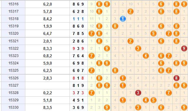 百位:上期百位开出奇数,是在间隔1期之后开出的,从走势图上看,近期百位上的奇数有连续开出过,所以本期推荐同时关注在百位上开出奇数和偶数;