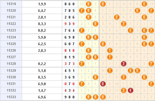 3D第2015334期综合走势图: