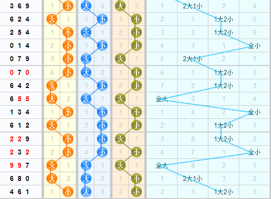 百位:分析近期的百位走势,百位上期开出的是小号,分析百位大小走势,本期看好大号的开出