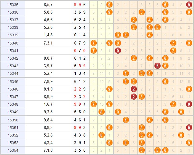 上期回顾:第2015354期开奖号为356,继续开出了组六的类型,形态上开出了奇奇偶、小大大,和值在第二分区和值为14,跨越度不大为3。