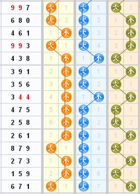 百位:百位上大小数波折不大,主要是小数占领主导位置,而上期开出了大数本期继续开出的机率不大但是本期继续被小数占据的可能性比较大;