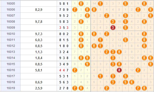 近几期开出的和值分别是16-15-9-14-17,本期盯防和值小幅度往左迁移,范围锁定在9-14点之间。