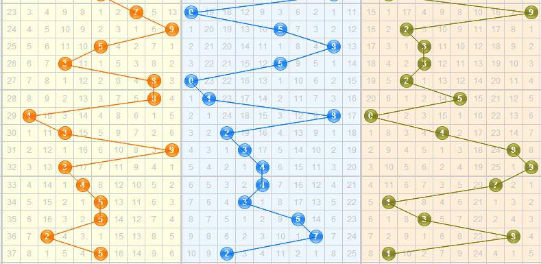(二)跨度分析:上期跨度开出4,近10期大小跨度的出现次数均等,本期看好大码跨度积极表现,综合推荐5、6、9。