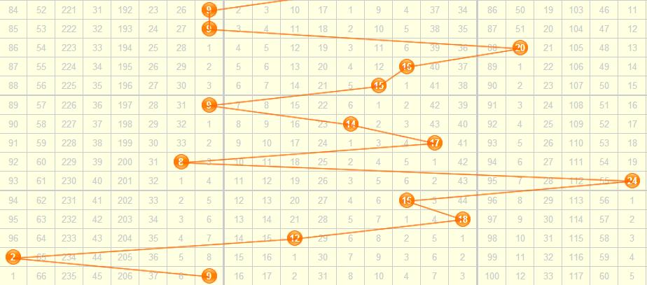 百位:百位上期开出的是3号,分析3号的往期走势,前面开出隔了10期开出的,本期不看好它的重复开出。1号当前隔了一期开出的,分析1号的走势,前面开出是隔了12期开出的,分析往期走势,不看好它的隔期开出。0号在百位上持续43期没开出了,0号是百位上的大冷号,本期不看好它的开出。8号在当期百位上有15期没开出,本期不看好它的开出。本期百位推荐号码:245679