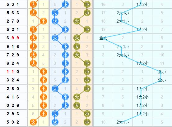个位:分析近期的个位大小走势,个位上期开出的是两个小号,分析近期的个位走势,本期看好个位上的大号的开出。