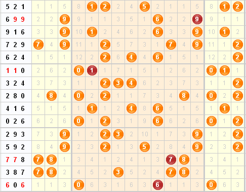 上期开出606,开出了全偶的形态和组六的类型,在形态上没有太大的改变,而奇偶的排列上稍有变化,从而可以看出近期大数之间开出的比较平衡没有多大的改变。0号球的走势还算比较稳定,而近期0号球没有走出连开可能是在等待机会本期的话大家可以重点关注一下;6号球虽然没有之前的稳定但是走势还算不错本期的话也建议再留意。