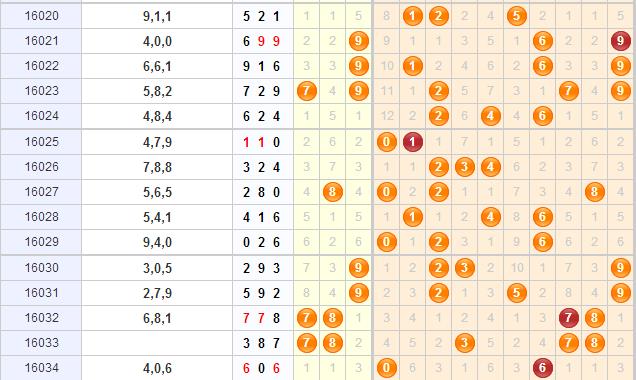 上期没有开出连号,之前连续开出了2期,从走势图上看,近期的连号开出总会间隔2期左右,本期不看好连号的开出。