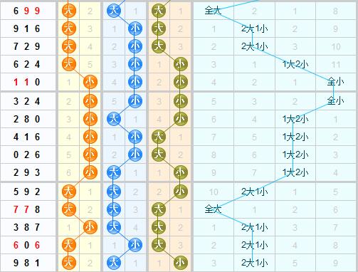 百位:分析近期的百位大小走势,百位上期开出的是大号,分析走势,本期推荐大小都关注。