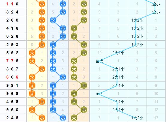 百位:分析近期的百位大小走势,百位近期的大小开出是呈交叉开出的,上期开出的是小号,本期推荐小号的继续开出。