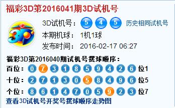 3D第2016041期3D试机号后北斗星预测分析