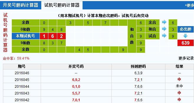 3d之家3d试机号胆码计算器:必出胆639