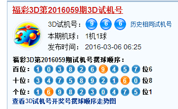 根据以上3D试机号开奖结果分析,今日3d试机号的开奖号码是966,近期的话3d开奖结果里开出的号码都有试机号开出的号码1-2个,所以本期试机号开出的6号球跟9号球都需要关注。另外目前组三已经有三期没有开出来了,而试机号跟胆码计算器都开出了组三,看来本期不得不防一下组三的开出。
