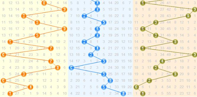 和值近期的表现比较稳定,目前为3点的斜连线,8-9-10,本期继续开出4点斜连线的概率不大,所以本期看好点位的中振幅上升和小幅度回落,本期和值关注:9 13 15 16 17。