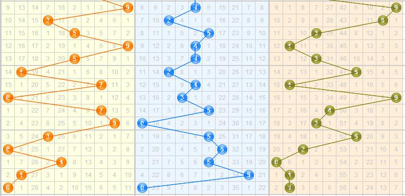 个位:近期个位上的跨度走势(3-5-8-5-1-3-4-2-1-0),根据跨度公式推算,本期留意跨幅大跨隔期出号,防小跨连续出号,重点推荐小跨1、4防大跨5。推荐号码0、5、6