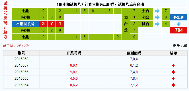 3D试机号胆码计算器:今晚必出胆码784
