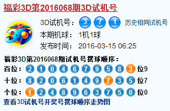 3D第2016068期3D试机号后北斗星预测分析: