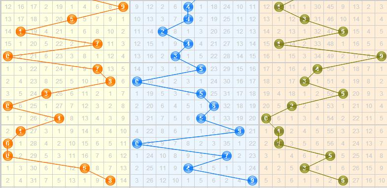和值分析:近5期开出的和值分别是10-1-12-13-23,本期盯防和值小幅度往左迁移,范围锁定在10-17点之间。
