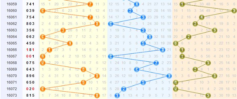和值分析:近5期开出的和值分别是13-23-11-2-14,不难看出和值的走势起伏很大,再次回到中区之后,和值有望平稳下来,本期推荐关注和值区间:10-19。