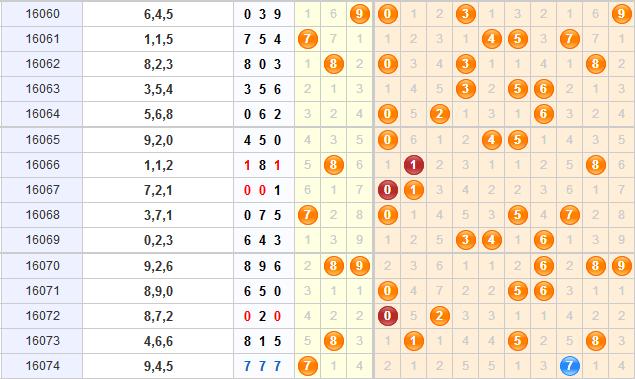 上期的开奖号码是777,0号球目前间隔2期未开出,本期开出符合它的出现周期,本期推荐关注0号球的开出;1号球目前间隔1期未开出,本期可以适当关注它的隔期开出;3号球和4号球目前都是间隔5期未开出,本期推荐可以同时关注这两个球的开出;5号球目前也是间隔1期未开出,之前经常是在间隔1期之后开出的,本期重点推荐关注5号球的隔期开出;7号球是上期的开奖号码,本期可以适当继续关注它的开出;