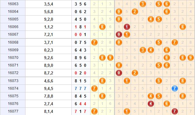 上期的开奖号码是717,开出了组三形态;0号球目前间隔5期未开出,本期推荐关注它的开出;1号球是上期的开奖号码,之前有过连续开出,本期可以继续关注它的开出;3号球目前间隔8期未开出,属于近期内走势较冷的号码,本期可以适当关注它的回暖;4号球目前间隔1期未开出,本期可以关注它的隔期开出;7号球是上期的开奖号码,本期也可以继续关注它的开出;9号球目前间隔7期未开出,本期可以适当关注它的开出;