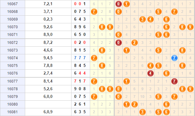 上期开出的和值是14,属于第二区间内的数,从走势图上看,近5期内有4期和值位于第二区间,本期继续关注和值落在第二区间;综合推荐:10 11 13 15 16 17