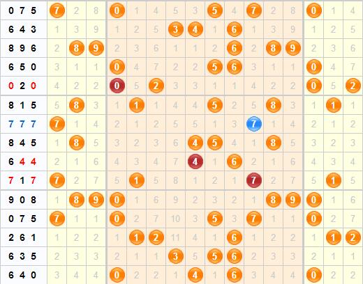 分析近期的综合分析走势图,0号上期开出一次,之前的开出重复开出较多,本期看好它的开出。4号和0号的走势一样,之前开出是重复开出较多,上期开出一次,本期看好它的开出。5号当前在斜连号上,而且5号在近期的开出呈隔期开出的,当前有一期没开出,本期看好它的开出。7号当前也在斜连号上,近期的斜连号开出还算比较多,本期看好它的开出。8号当前有4期没开出,分析8号的走势来看,本期看好它的开出。
