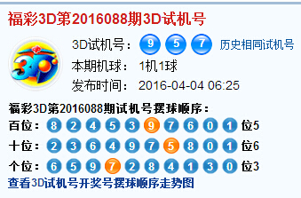 3d第2016088期试机号后北斗星预测分析: