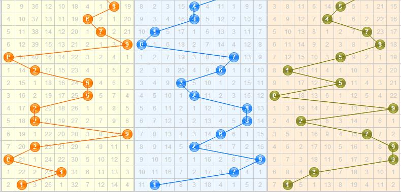 跨度分析:上期开出0跨,近十期5-3-6-7-6-3-7-9-4-0,上期偶数跨开出,留意奇数跨防偶数跨,主看9跨,防8跨