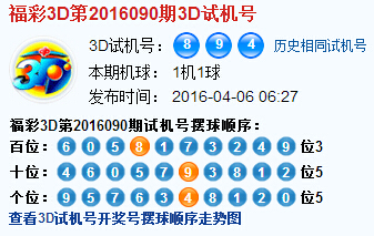 3d第2016090期试机号后北斗星预测分析: