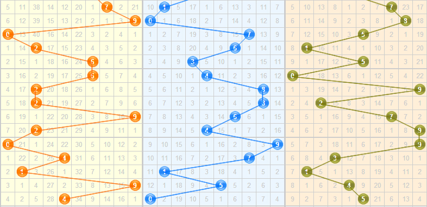 和尾分析:近5期和尾分别为8-4-3-8-9,关注中小和尾开出,重点和尾推荐:3456