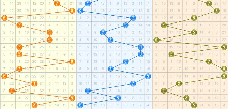 上期开出跨度5,持续两期的跨度均为5,处于跨度的中部地区,近期跨度值有由小变大再变小的趋势,本期看好小跨度的产生,在5的中部地区左右徘徊;推荐跨度:3、4、7。