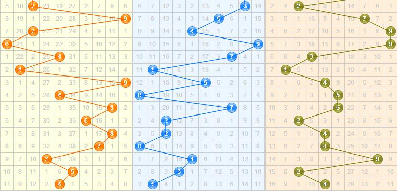 末位:上期开出小号偶数4,近10期奇偶比开出3:7。近10期个位上大小比值3:7,结合大小走势图看,本期关注大数出号,关注678。