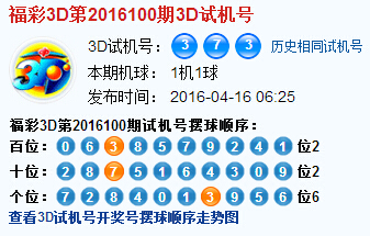 3d第2016100期试机号后北斗星预测分析: