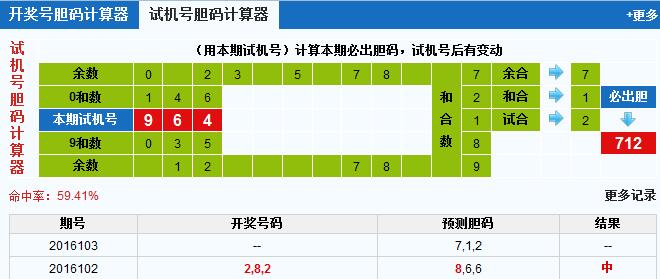 3D试机号胆码计算器:今晚必出胆码712