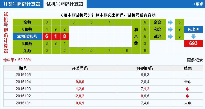 综上分析,再根据本站经过10年来的大数据,独创3d试机号智能计算器推算出本期胆码345678。