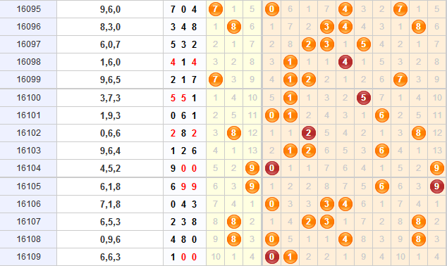 百位:上期百位开出小数,本期结合百位上的大小走势分析,百位上连开了3期小数,已经达到了近期百位上小数连开的最大期数,本期看好百位上大数的开出。